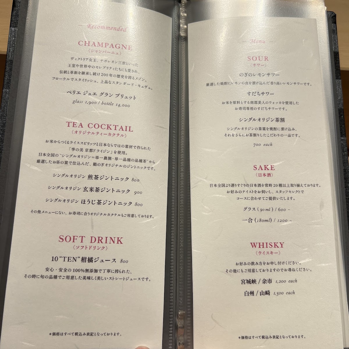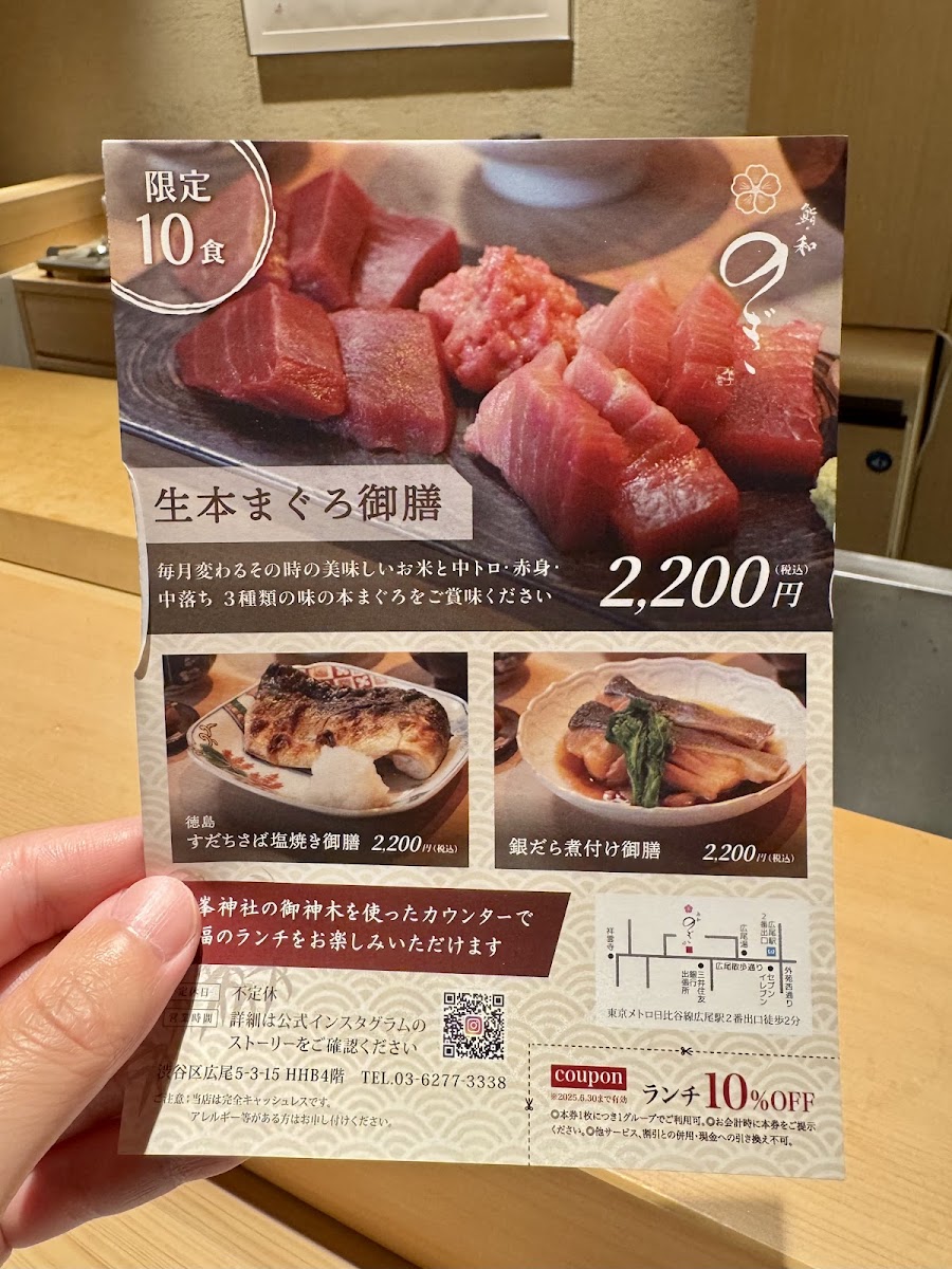 Sushi Wasyoku Nogi offers a refined dining experience with a menu that beautifully showcases traditional Japanese flavors. The standout dishes, such as the Anago Eel, are perfectly grilled to bring out a delicate sweetness, offering a satisfying contrast to the richness of sushi. For those seeking something truly exceptional, the 本鮪の刺身 (bluefin tuna sashimi) stands out for its buttery texture and deep, oceanic flavor, making it a must-try. The menu also features a variety of refreshing beverages, with 生ビール (draft beer) being the ideal complement to the meal, balancing out the rich umami of the dishes. Overall, the menu at Sushi Wasyoku Nogi captures the essence of Japanese cuisine with every bite, highlighting both fresh, seasonal ingredients and a commitment to authenticity.